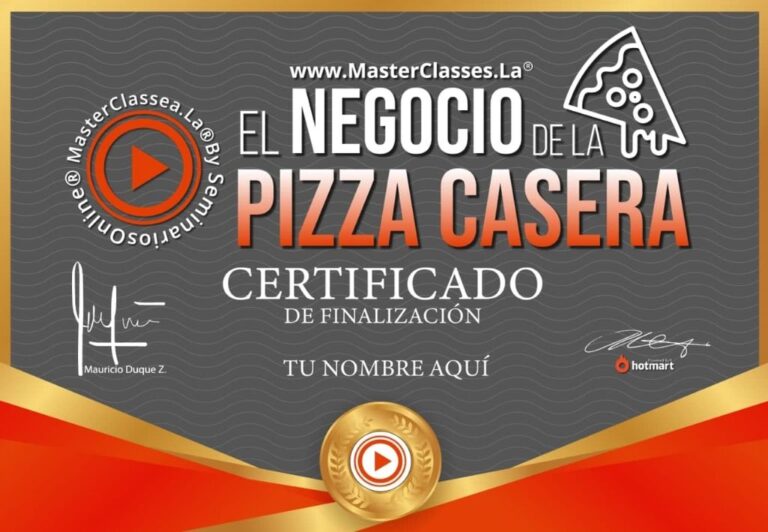 Accederás a un certificado avalado por Hotmart y Seminarios Online que respalde tu nueva expertise en el arte de la pizza.